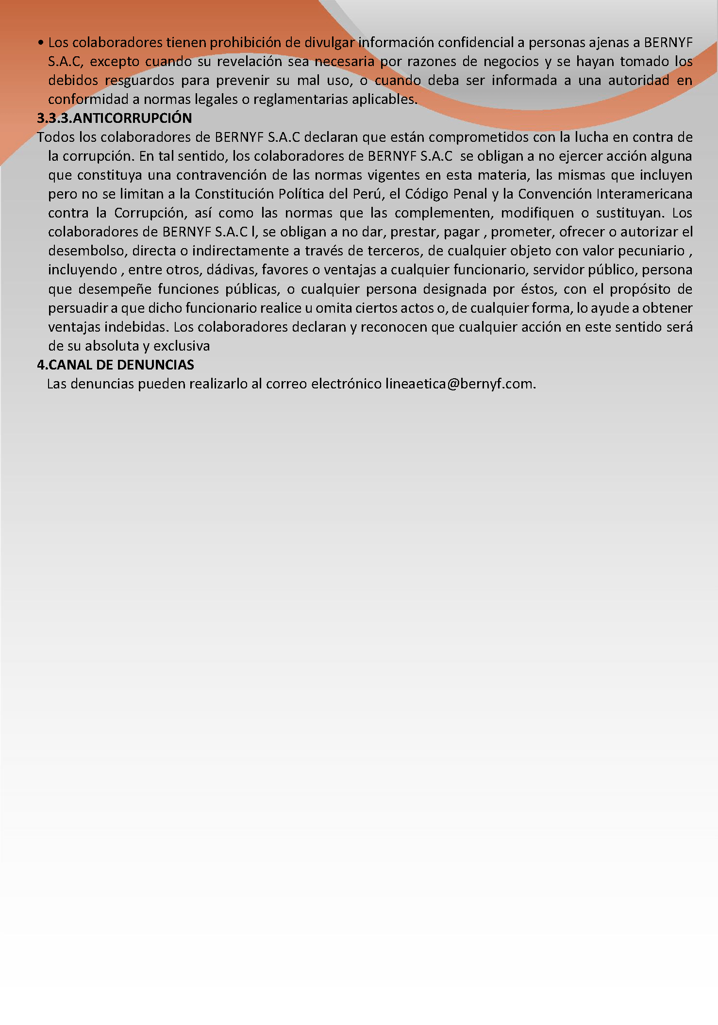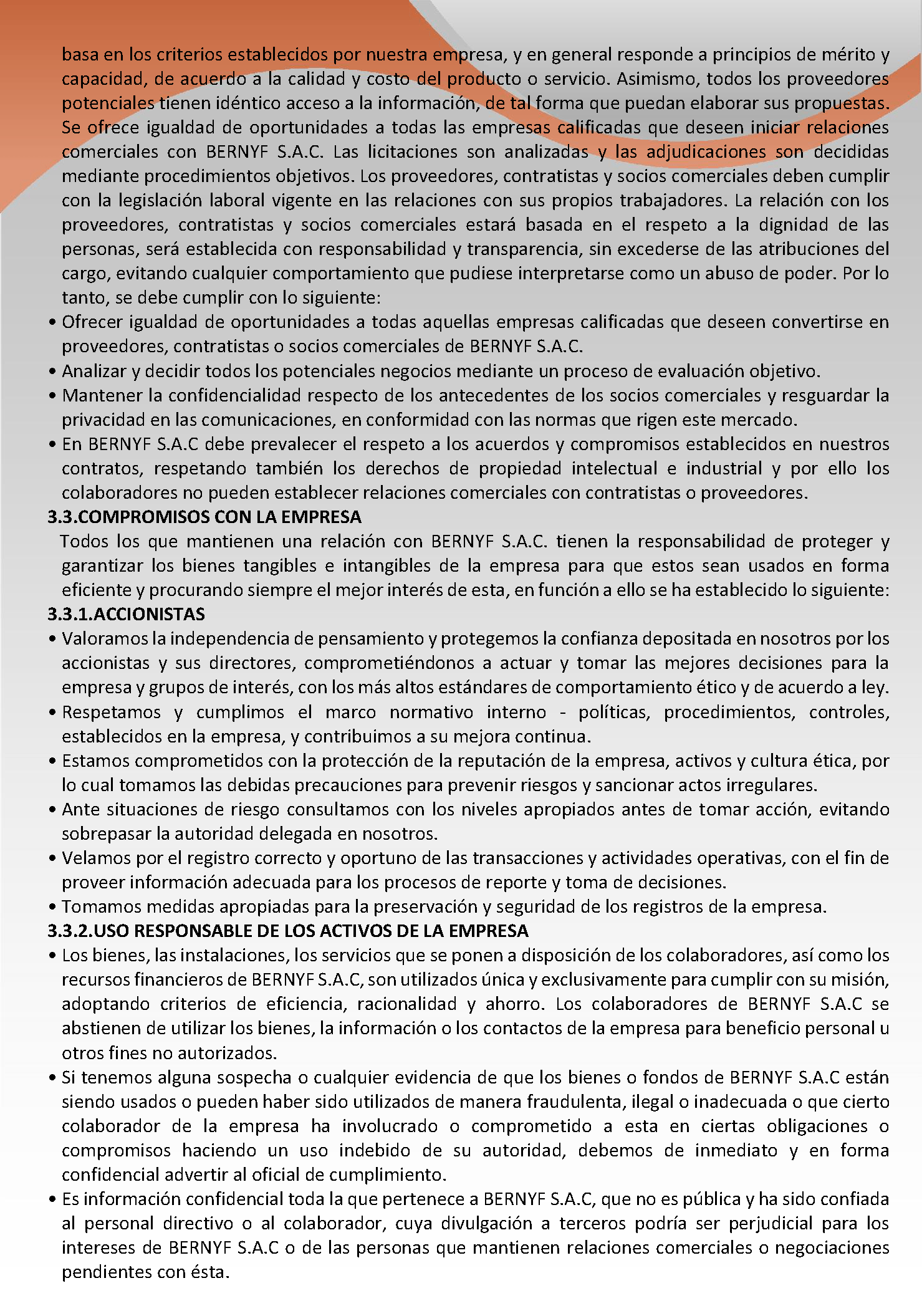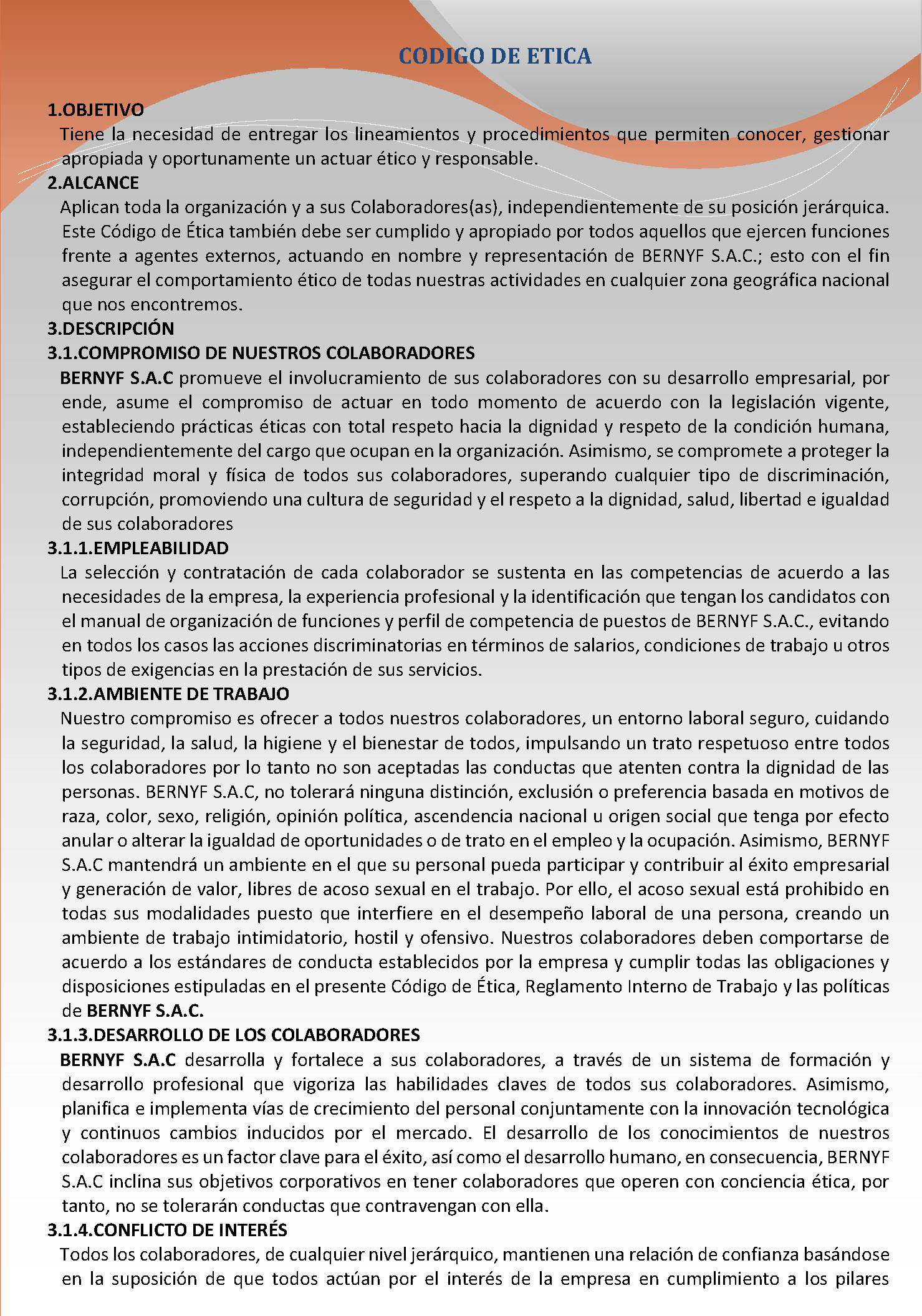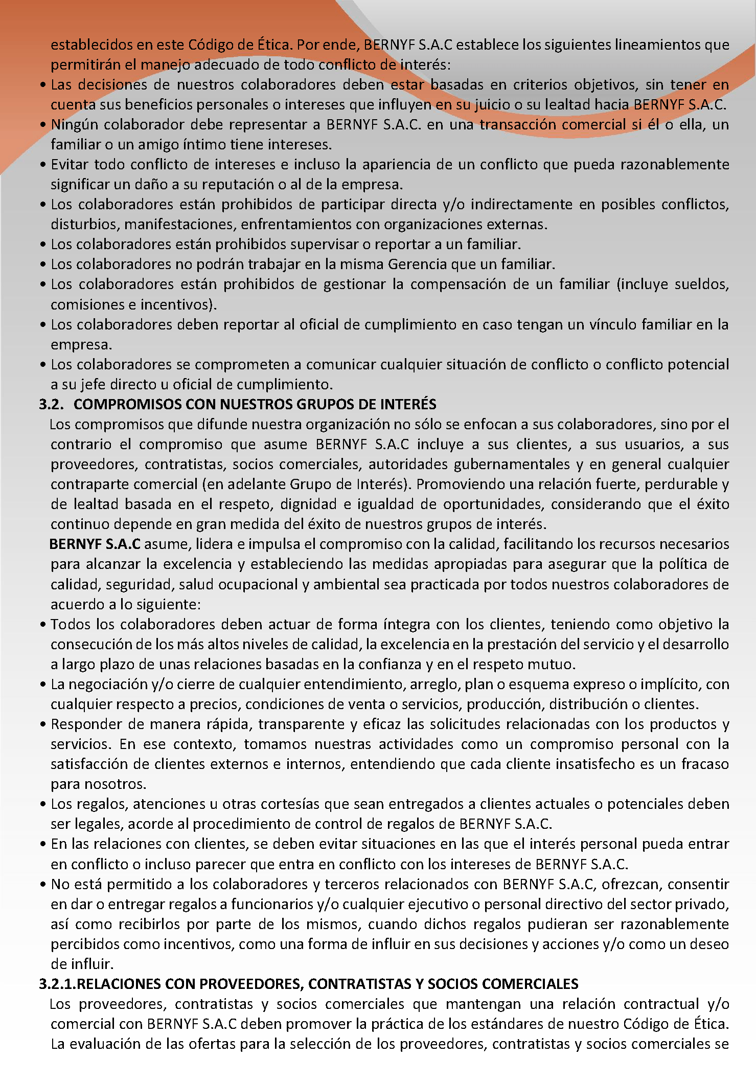 En BERNYF S.A.C. Trabajamos para mantener la integridad de los procesos, minimizar riesgos y promover la MEJORA CONTINUA e INTEGRACIÓN DE LOS SISTEMAS DE GESTIÓN DE LA ORGANIZACIÓN, proporcionando al cuidado de la salud, seguridad y medio ambiente, la misma importancia que a la rentabilidad, operatividad, calidad, ética y todas las actividades comerciales implicadas.